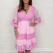 Fashion Lace Spliced V-neck Elbow Sleeve Mini Dress