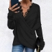 Fashion Lace Spliced V-neck Long Sleeve Irregular Hemline Cape Style Shirt