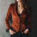 This luxurious shirt features elegant lace splicing with flattering V-neck styling and artistic irregular hemline for contemporary opulent sophistication. And the velvet fabric ensures sumptuous texture and luxurious sophisticated appeal. Pair with tailored bottoms and heels for sophisticated elegant appeal.