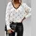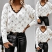 Fashion Lace Spliced V-neck Long Sleeve Loose Sweater