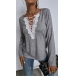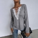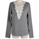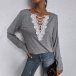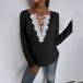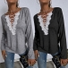 Fashion Lace Spliced V-neck Long Sleeve Loose T-shirt