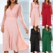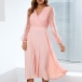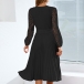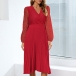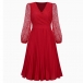 Fashion Lace Spliced V-neck Long Sleeve Pleated Dress