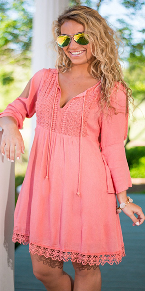 This dress features solid color style,simple but stylish and chic. Lace spliced design makes it more feminine.