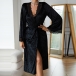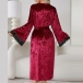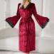 Fashion Lace Spliced V-neck Long Sleeve Self-tie Loungewear Robe