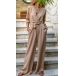 Fashion Lace Spliced V-neck Long Sleeve Self-tie Waist Wide-leg Jumpsuit
