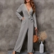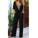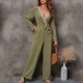 Fashion Lace Spliced V-neck Long Sleeve Self-tie Wide-leg Jumpsuit