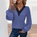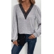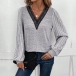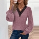 Fashion Lace Spliced V-neck Long Sleeve Shirt