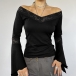 This shirt features lace detailing, a V-neckline, long sleeves, and a slim-fit silhouette for a sophisticated and stylish look. Pair it with high-waisted bottoms or wear it loose for a more relaxed look.