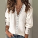 Achieve for a chic and stylish autumn look with the help of this knit top. Solid color style,the lace spliced v-neck design can help enhance your feminine appeal,while the button details at the cuff part will add some extra charm. Try to match with a jeans to enjoy your happy time.