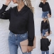 Fashion Lace Spliced V-neck Long Sleeve Solid Color Top