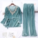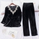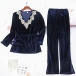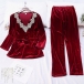 Fashion Lace Spliced V-neck Long Sleeve Top + Pants Nightwear Set
