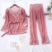 During your home time and sleeping time,this nightwear set can strike your mind. Including a long sleeve v-neck top and a pants,its soft and cozy fabric can give you an utmost comfort,while the lace spliced details will add some extra charm. You can trust in this nightwear set to have a good sleeping!