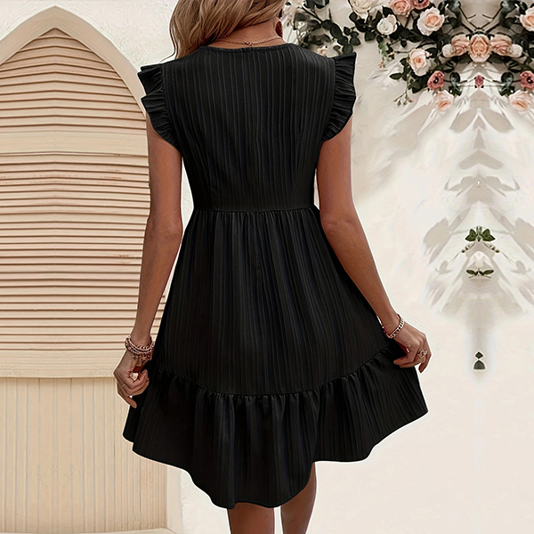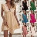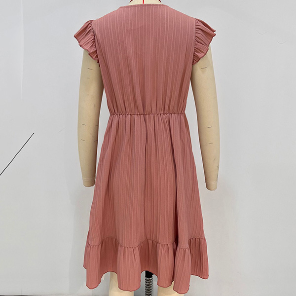Fashion Lace Spliced V-neck Ruffle Sleeveless Mini Dress