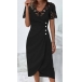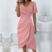 Fashion Lace Spliced V-neck Short Sleeve Button Ruched Irregular Dress