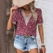 Fashion Lace Spliced V-neck Short Sleeve Floral Printed Shirt