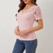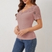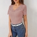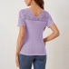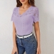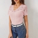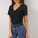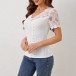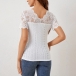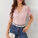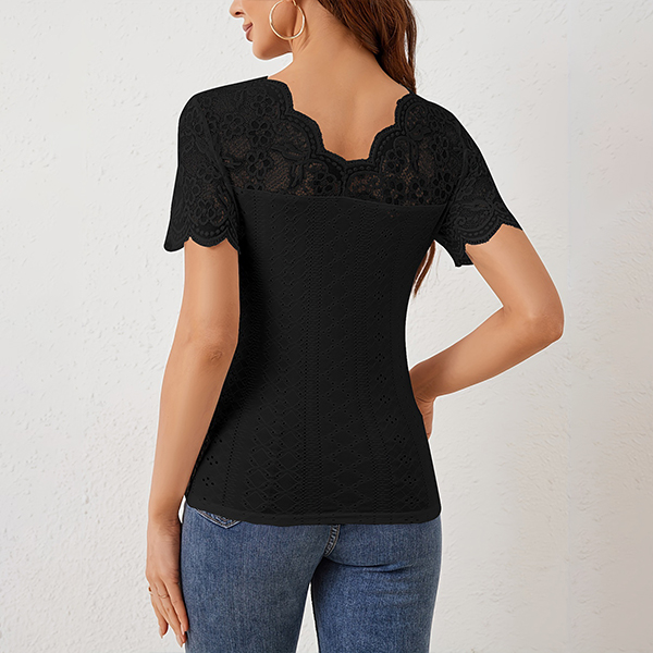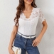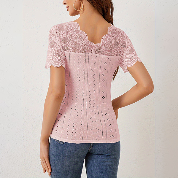 Fashion Lace Spliced V-neck Short Sleeve Hollow Out Shirt
