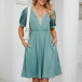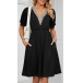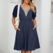 Fashion Lace Spliced V-neck Short Sleeve Mini Dress with Side Pockets