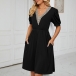 How about this dress? I like the floral lace details along the V-neck, it adds a touch of elegance to the dress, while the side pockets add practicality and convenience. The mini length of the dress makes it perfect for any casual or semi-formal occasion, such as a daytime outing or a night out with friends. Overall, this dress is a versatile and chic addition to any fashion-conscious person's wardrobe. Multi-color avaible.