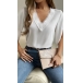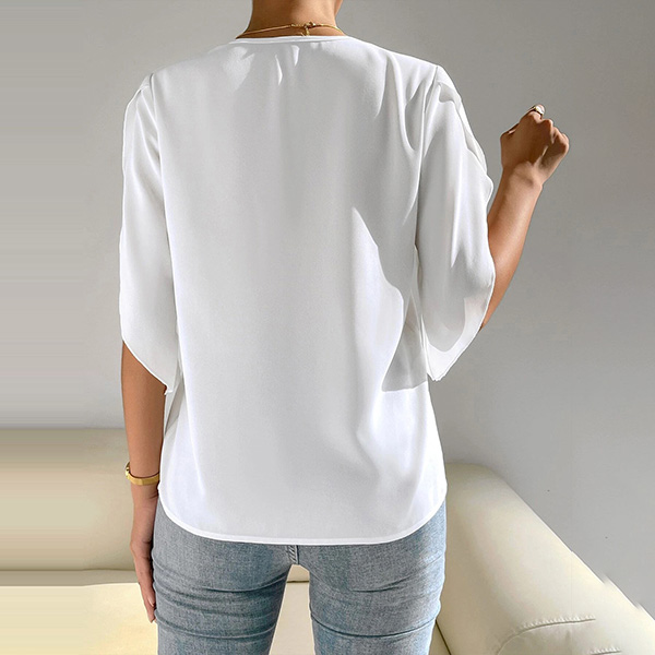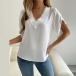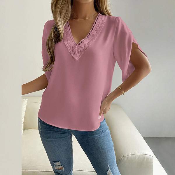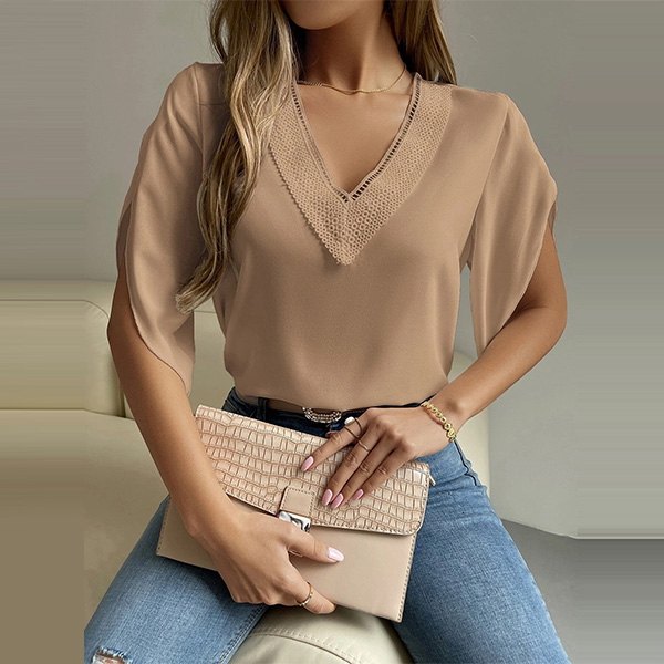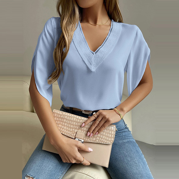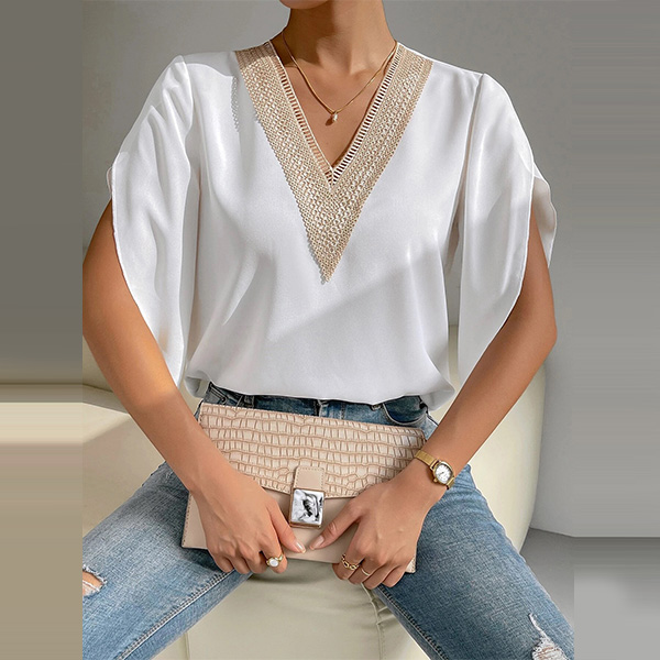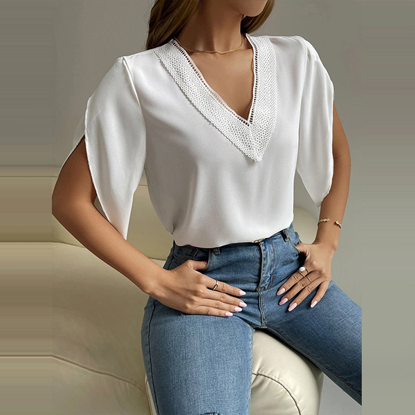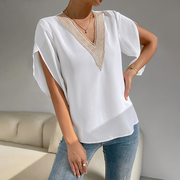 Fashion Lace Spliced V-neck Short Sleeve Shirt