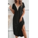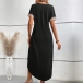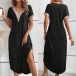 Fashion Lace Spliced V-neck Short Sleeve Side Slit Dress