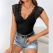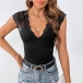 Fashion Lace Spliced V-neck Sleeveless Bodysuit