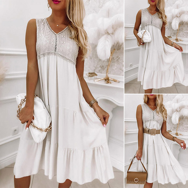 Fashion Lace Spliced V-neck Sleeveless Dress