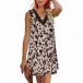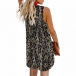 Fashion Lace Spliced V-neck Sleeveless Leopard Printed Dress