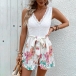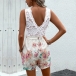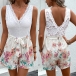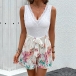 Fashion Lace Spliced V-neck Sleeveless Self-tie Floral Printed Romper
