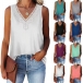 Fashion Lace Spliced V-neck Sleeveless Solid Color Top