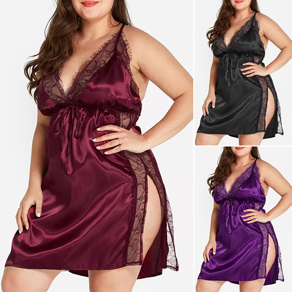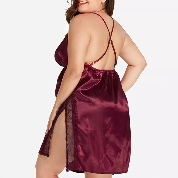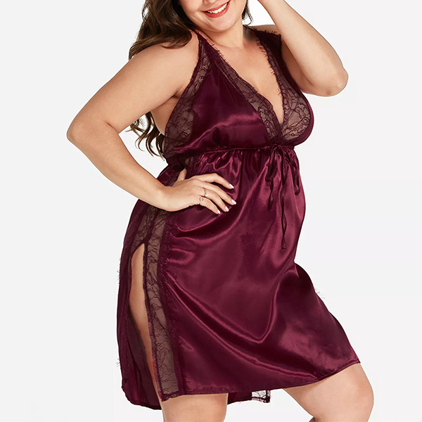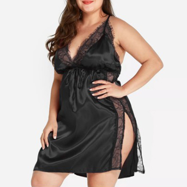 Fashion Lace Spliced V-neck Slit Plus-size Nightwear Dress