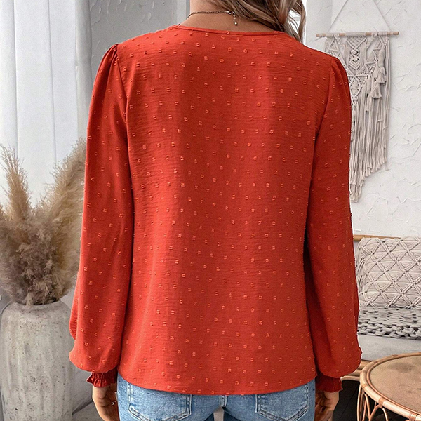 Fashion Lace Spliced V-neck Swiss-dot Long Sleeve Shirt