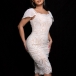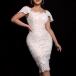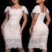 Fashion Lace Squared Neck Cap Sleeve Bodycon Dress