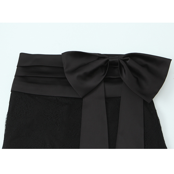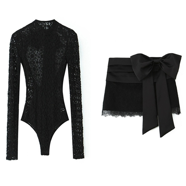 Fashion Lace Two-piece Set Consist of Semi-through Backless Lace Bodysuit and Bowknot Mini Skirt