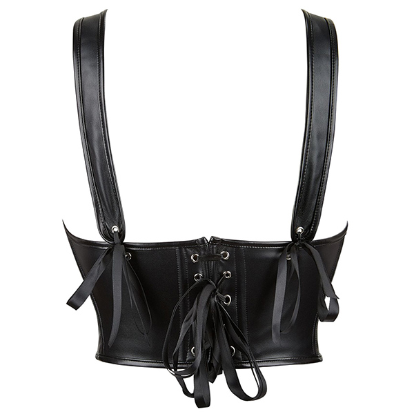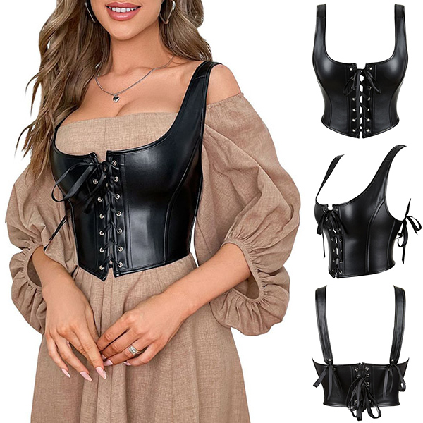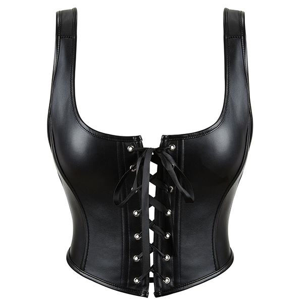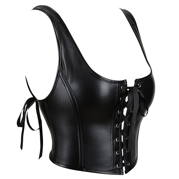 Fashion Lace-up Artificial Leather PU Crop Corset Shirt