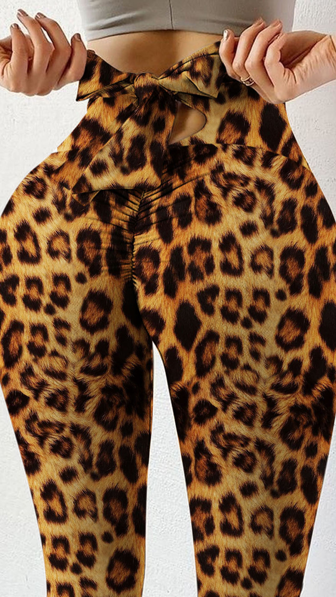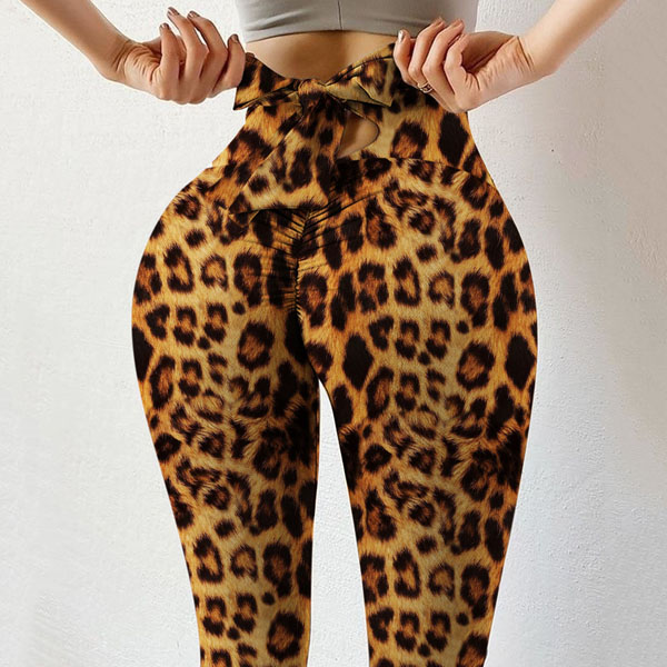Hey,girls,you can trust me that this leggings can be a good weapon to flaunt off your slender legs. The leopard printed details make this piece look so eye-catching. Moreover,the lace-up bow-knot design at the waist design will lend you a dash of sweet and charming vibes. Try to match with a sports crop top to enjoy your sports time as well as showcase your figure.