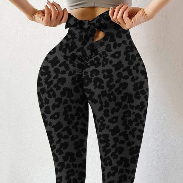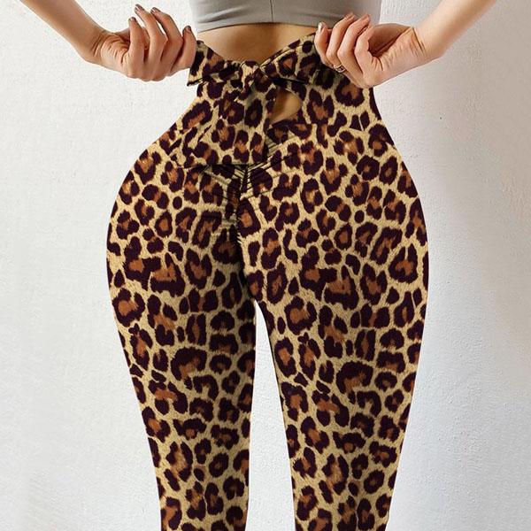 Fashion Lace-up Bow-knot High Waist Leopard Printed Stretch Leggings