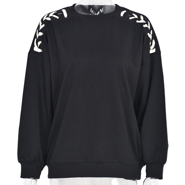 Fashion Lace-up Long Sleeve Round Neck Solid Color Sweatshirt