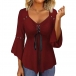 Fashion Lace-up Round Neck 3/4-Sleeve Irregular Hemline Shirt
