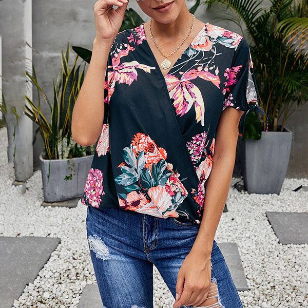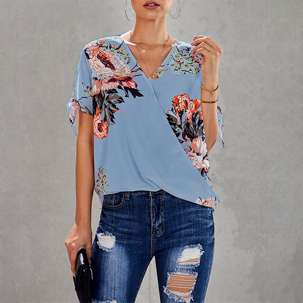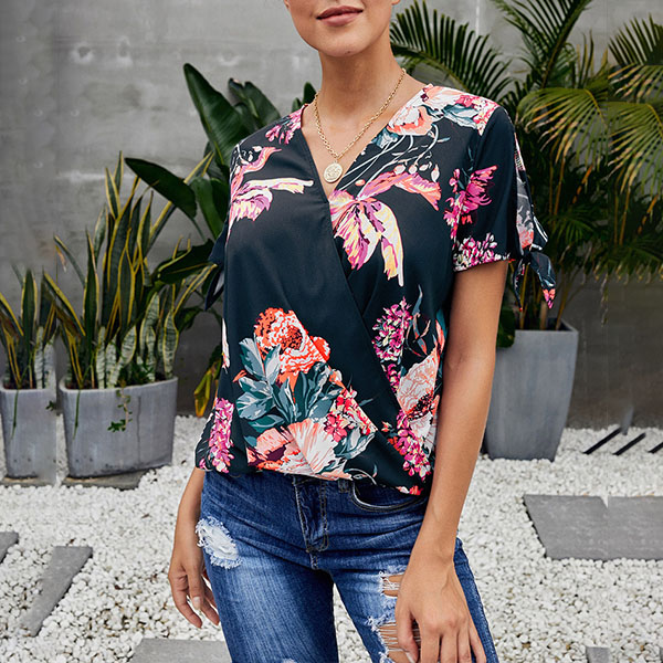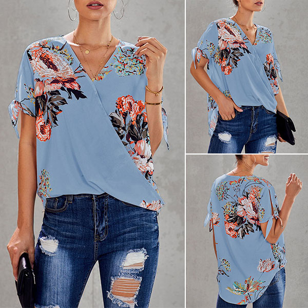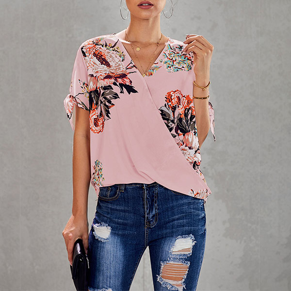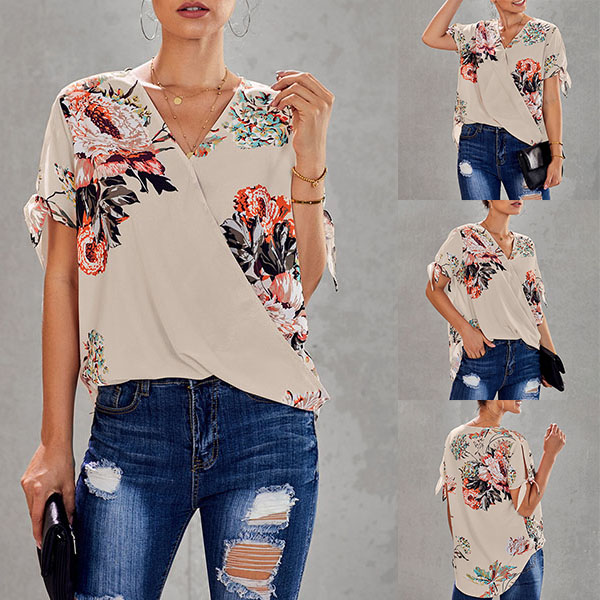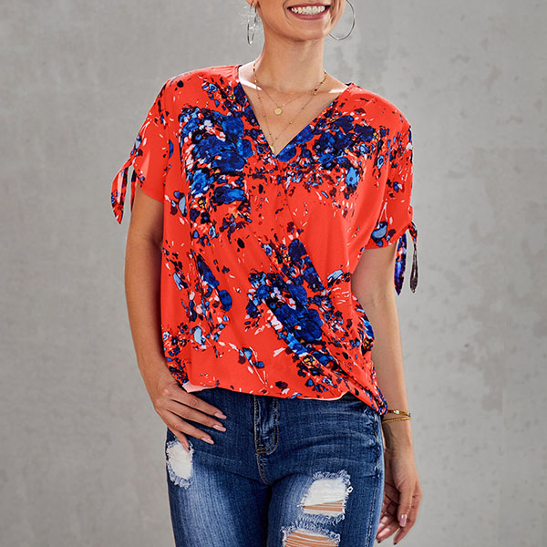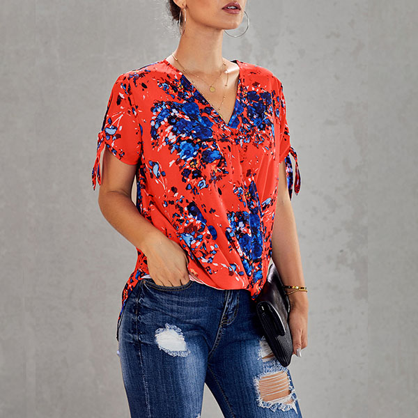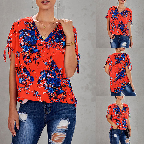 Thanks to the chic and eye-catching printed details,this top can help you arouse more attention. Finished with short sleeve,v-neck and a loose silhouette,this piece knows how to keep the comfy while it maintains your style and personality. Your perfect choice in these summer days.