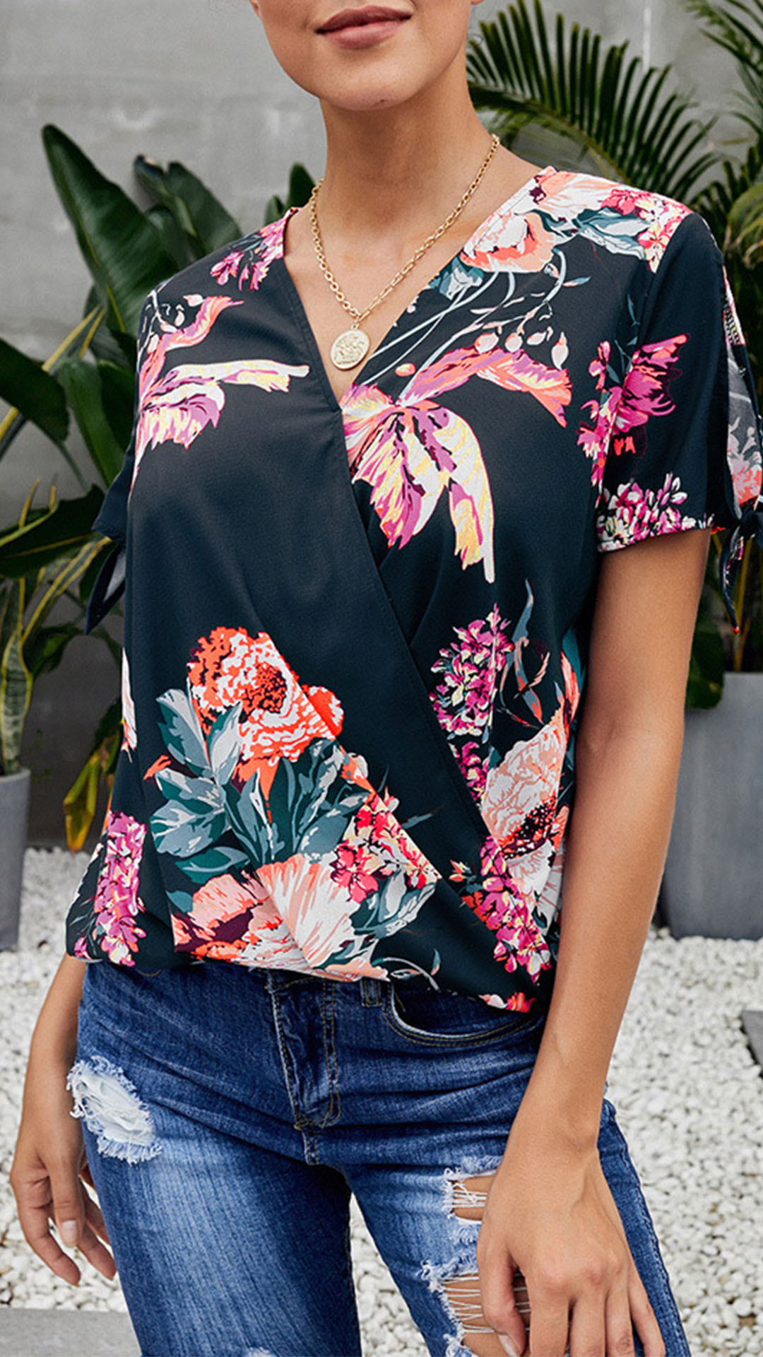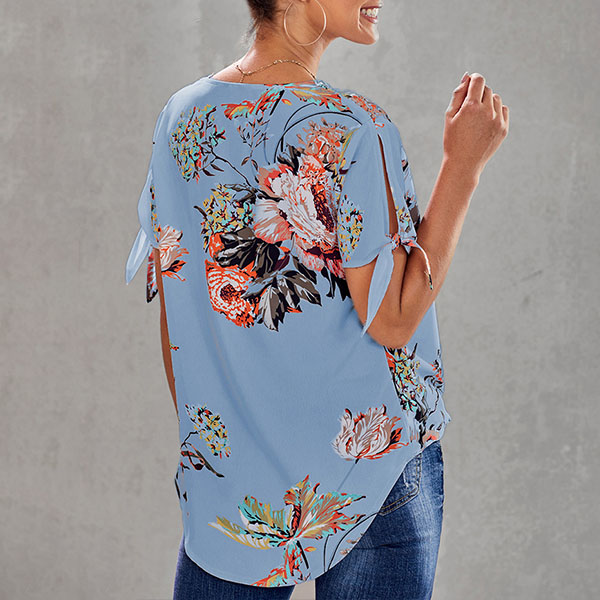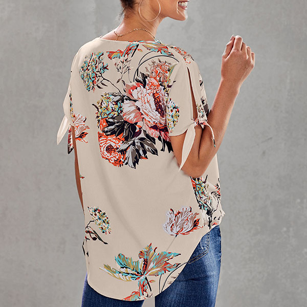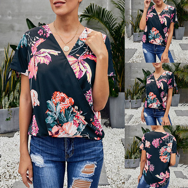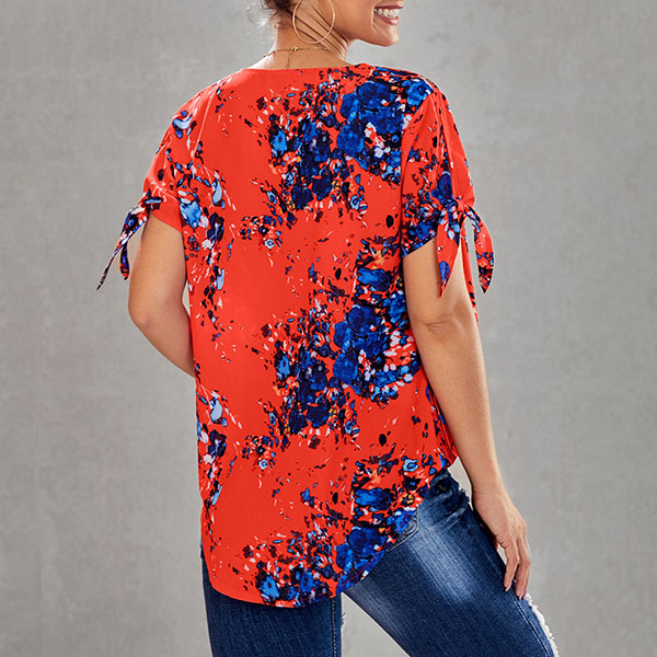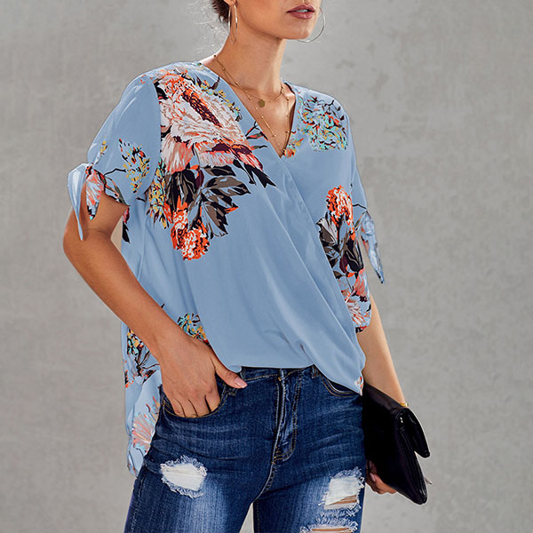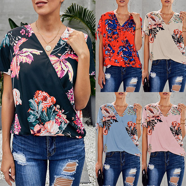 Thanks to the chic and eye-catching printed details,this top can help you arouse more attention. Finished with short sleeve,v-neck and a loose silhouette,this piece knows how to keep the comfy while it maintains your style and personality. Your perfect choice in these summer days.