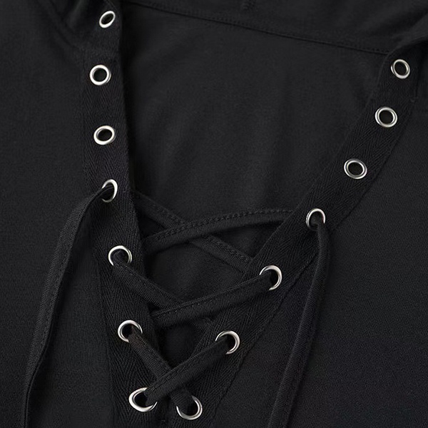 Featuring a lace-up V-neckline, hooded and irregular hemline, this dress exudes a chic and sensual vibe. Pair it with heels or boots for a sophisticated and alluring look.