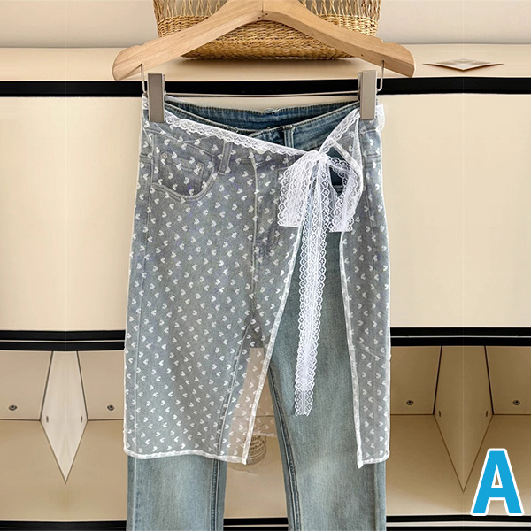 Fashion Lace Wrap-Skirt Apron for Layered Double-wear
