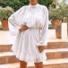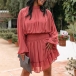 Fashion Lantern Sleeve Mock Neck Elastic Waist Ruffle Hem Solid Color Dress