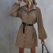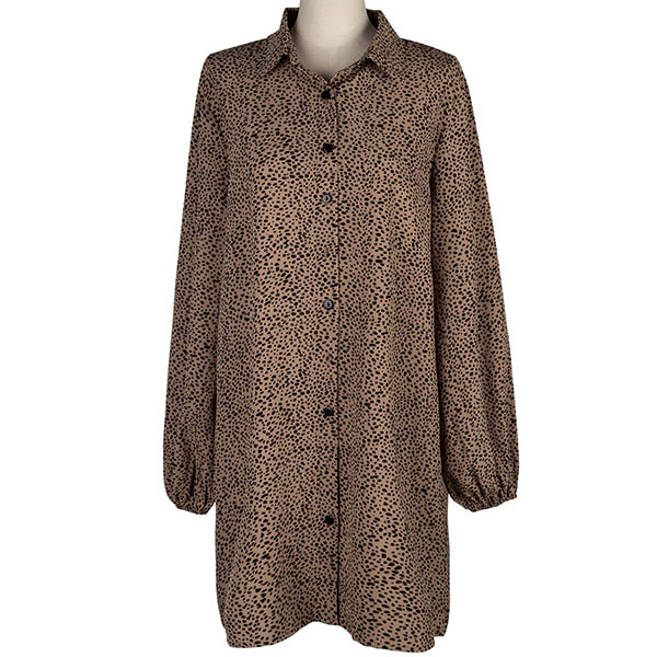 As for a delicate and stylish working look,you can just have a try this shirt dress. It features chic printed details,the lantern sleeve design will make this piece look more distinctive and attractive. You can add a thin waistband if you wanna enrich your overall dress up.