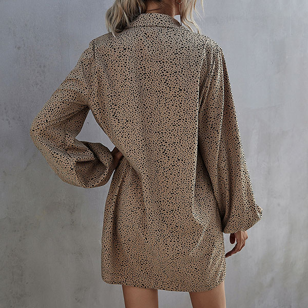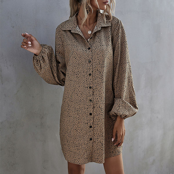 Fashion Lantern Sleeve POLO Collar Printed Shirt Dress