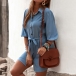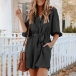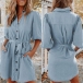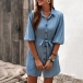 Fashion Lantern Sleeve POLO Collar Single-breasted Solid Color Shirt Dress