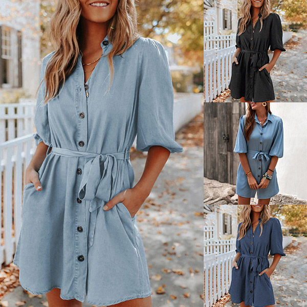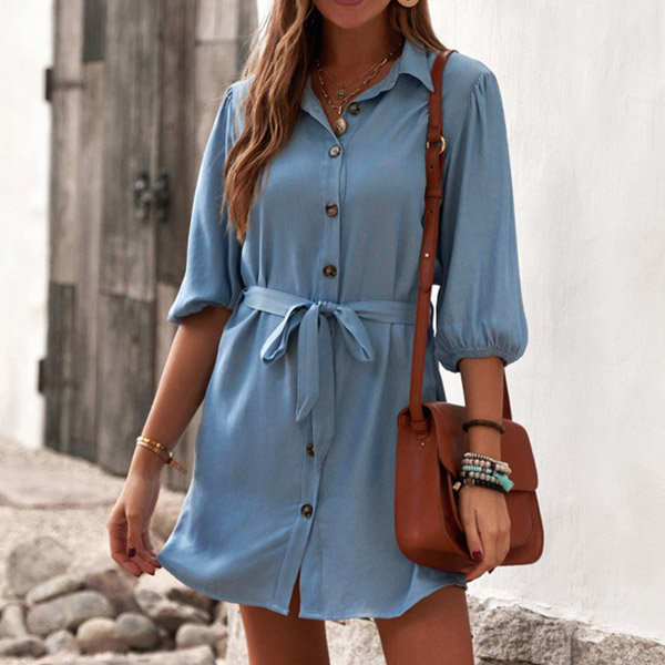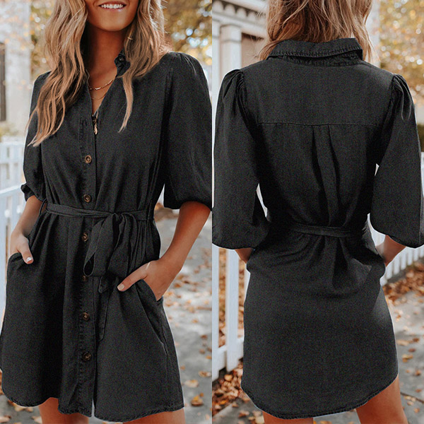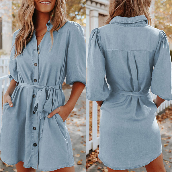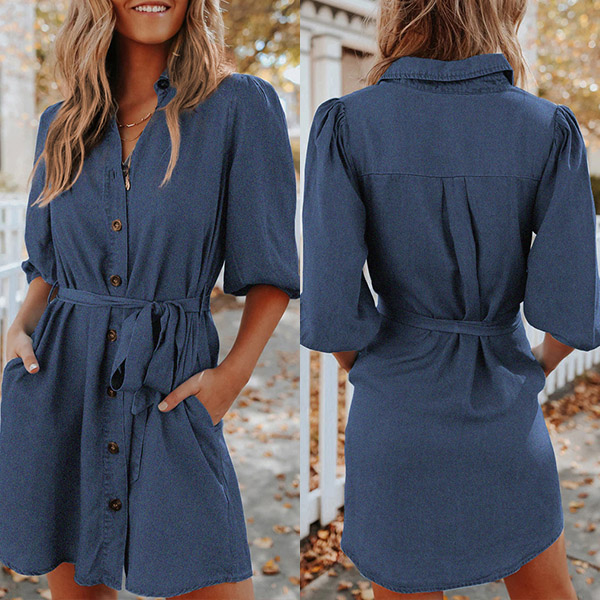 If you are looking for a proper dress for your busy workdays,then you can have a look any this shirt dress. Solid color style,the lantern sleeve,POLO collar and single-breasted design make this piece look so attractive. Comes with a waist strap,which can better highlight your waistline. Dress it up with your favourite shoes to start your wonderful day!