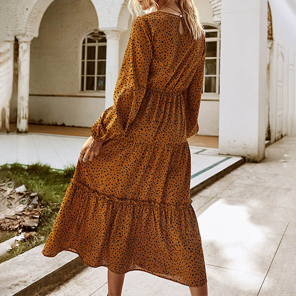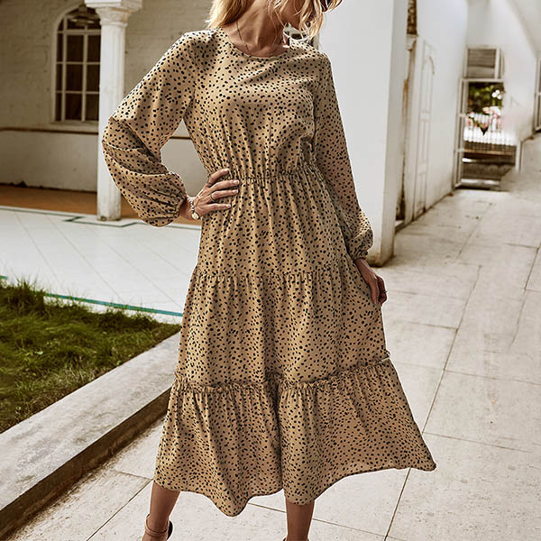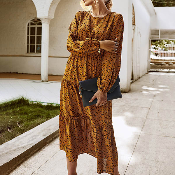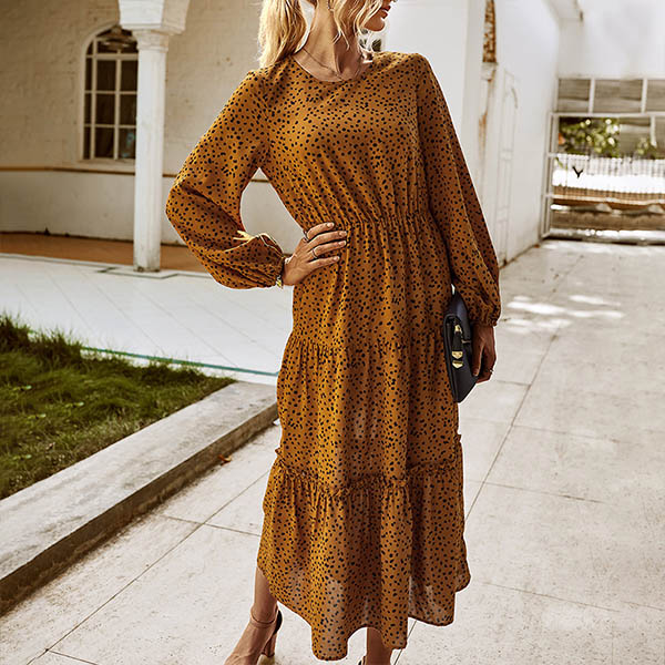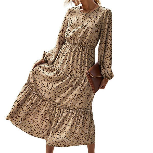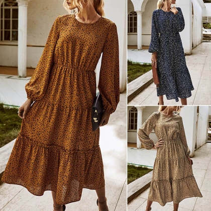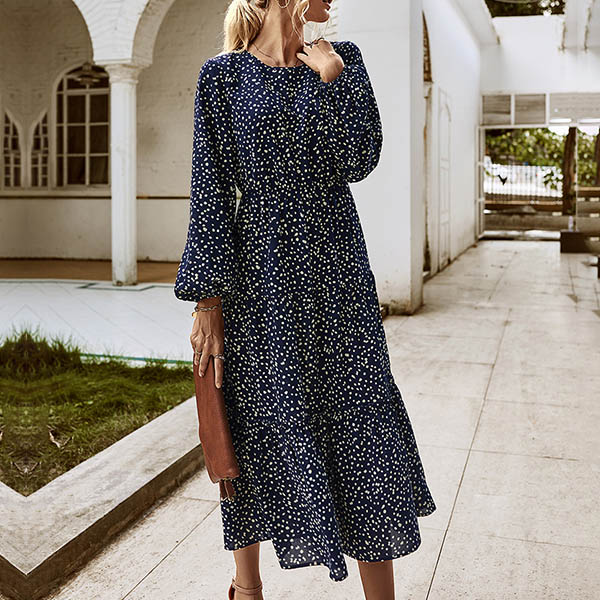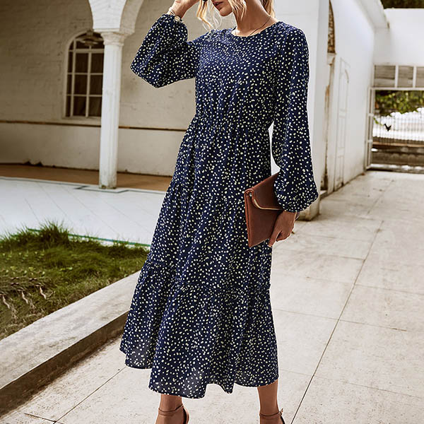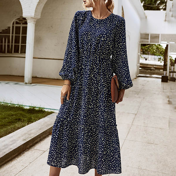 Start your wonderful day with this beautiful dress. It features chic and eye-catching printed details,finished with lantern sleeve,round neck and high waist design,this dress not only can showcase your slender figure,but also can make you look effortlessly charming and beautiful. So why not take interest in it?