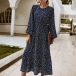 Fashion Lantern Sleeve Round Neck High Waist Printed Dress