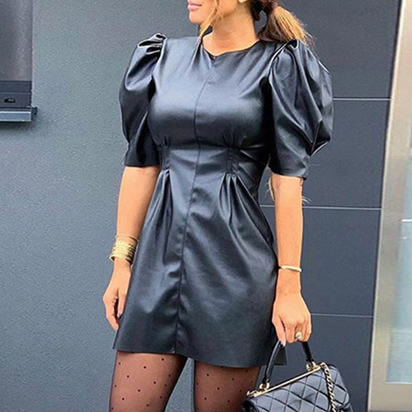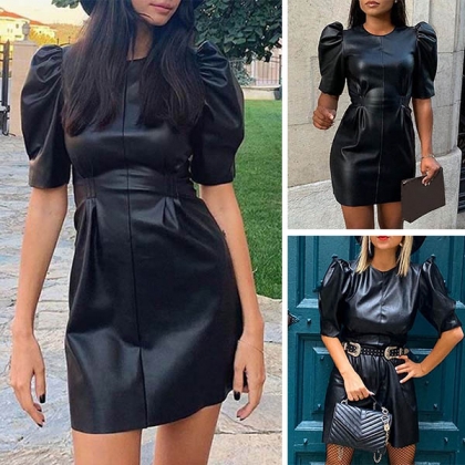 If there is one way to instantly give your image a style boost, it is by introducing this PU leather dress into your ensemble. It is finished with lantern sleeve,round neck,high waist and a fit silhouette design,this dress can exude your feminine appeal as well as showcase your slender figure.